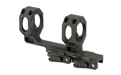The AD-RECON-M mount is made for putting high power glass onto a flattop style AR-15. Designed to be used in conjunction with a Laser Sighting System to bring the Objective Housing high enough to clear the laser, or for shooters requiring a higher cheek weld for heads up shooting. This is the mid-height mount that they offer, the centerline height with 30mm rings is 1.64″ and 1.7″ with 34mm rings. The cantilever throws the scope out front with 2″ offset, allowing you to get the right eye relief. It is precision machined from 6061 T6 aluminum and finished in hard coat T3 Mil-Spec anodize. It features the Patented QD Auto Lock Lever system to accommodate both in spec and out of spec rail systems.