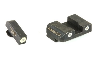 Sight set with green tritium lamp, orange or luminescent green outline front and two green tritium lamp, white outline rear for Glocks. Highly visible under all lighting conditions. LumiGreen paint will glow brightly for 10 minutes after light exposure.