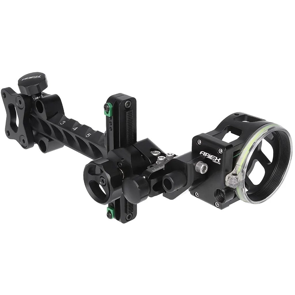 1.8” ID aperture with a bright single (1) 0.19” vertical pin. Micro adjustable windage adjustment. Adjustable for left and right-handed users. Glow ring illuminates fixed level. Fixed bracket with 3 mounting positions
