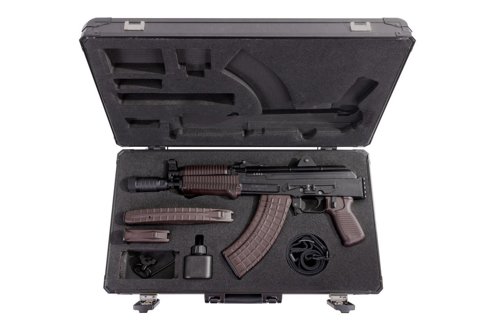 This package includes the standard 10rd magazine with an additional 30rd Circle 10 M-47W waffle magazine. It’s shipped in the Arsenal Custom Hard Case for SAM7K Series AK-47 Pistols. The case interior is lined with CNC machined hard foam custom designed to fit SAM7K series pistols with cut outs for magazines sling cleaning kit and oil bottle.Â