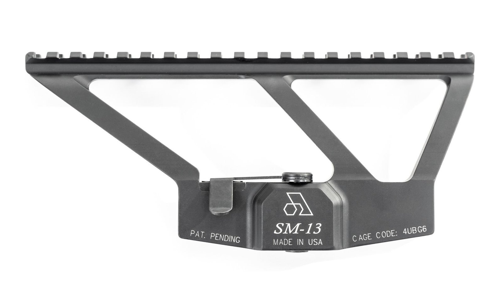 After the successful fulfillment of a military requirement Arsenal has released the SM-13 to the commercial market. This side-attaching scope mount for the AK variant rifles was born to meet and exceed the toughest objectives put in front of Arsenal The one-piece CNC precision machined SM-13 is manufactured from aircraft grade aluminum alloy for the minimum weight (only 5.76 ounces) and maximum strength.
