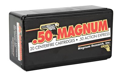 Magnum Research has long been known for hard hitting firearms. Magnum Research 50 AE ammunition is the perfect choice to feed these heavy hitters. This ammunition is new production, non-corrosive, in boxer primed, reloadable brass cases.
