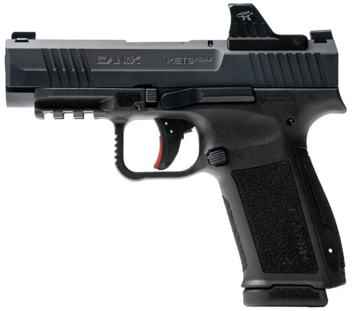 The Canik Mete MC9LS is chambered in 9mm with a capacity of 17+1rds and accept all standard and extended capacity Canik magazines. The MC9LS increases the barrel length 0.46 inches to a total of 3.64 inches with an overall length at 6.75 inches and unloaded weight of 23.73 ounces. The MC9LS will be initially offered in black flat dark earth (FDE) and two tone black/FDE. – Includes: – Two 17 Round Magazines – (1) Finger Extension Magazine Base Plate – Magazine Loader – Custom Holster – Canik Punch & Tool Kit – Cleaning Brush and Jag Rod – (3) Grip Backstraps – Gun Lock & Manual – Storage Case – Specifications – WEIGHT 23.77 oz – CAPACITY 17 rounds – FRONT SIGHT White Dot – REAR SIGHT Blacked-Out Dot – CARTRIDGE 9mm Luger – MAGAZINE TYPE Canik Sub-Compact Size Magazine – MAGAZINE INCLUDED 2 x 17 Round Magazines – FINISH COLOR Black – ACTION TYPE Semi-Automatic – FRAME MATERIAL Polymer – OVERALL LENGTH 6.75 – BARREL LENGTH 3.64 – HEIGHT 5.43 – WIDTH 1.14