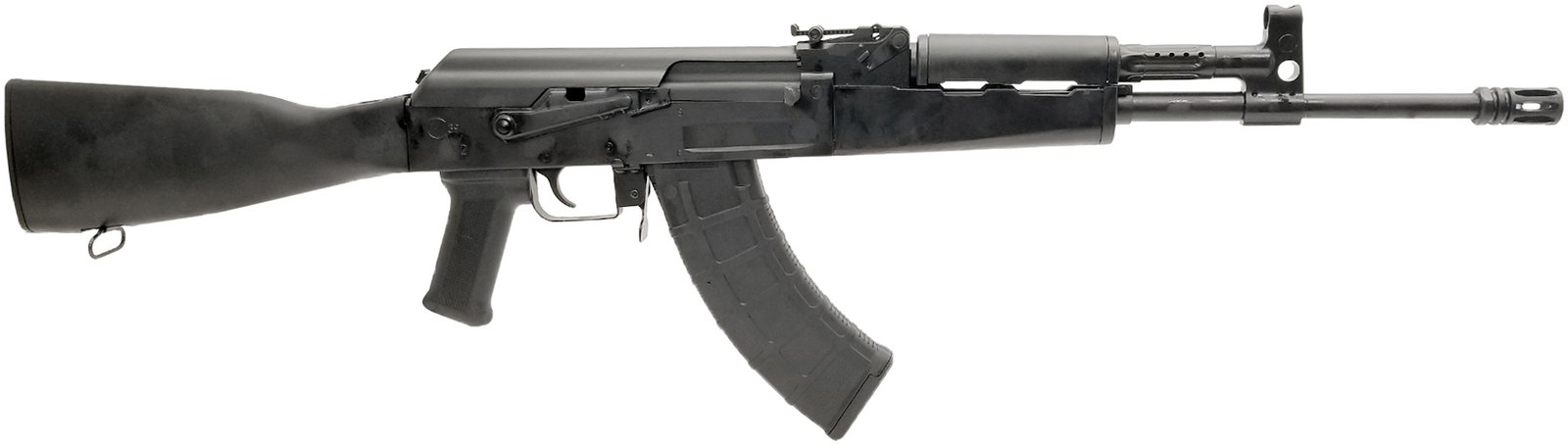 100% U.S. made – RAK-1 enhanced trigger group – Side scope mount – Black synthetic furniture – 7.62x39mm 30rd 16.5