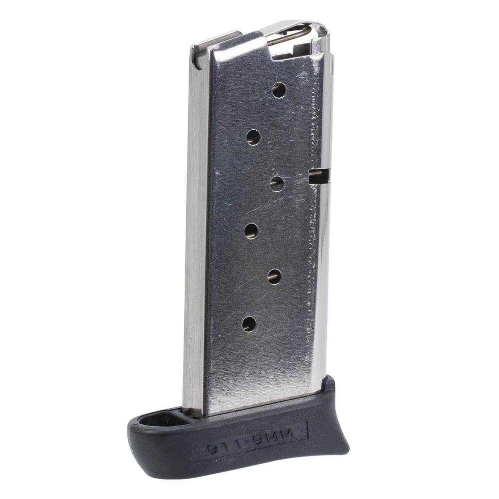 Check-Mate Sig Sauer P938 7 Round 9mm Magazine. Manufactured from durable steel this magazine is designed by Check-Mate Industries for the Sig Sauer P938 and Springfield 911 model pistols chambered in 9mm. This magazine features a polished stainless finish and boasts a capacity of 7 rounds of 9mm cartridges. Each Check-Mate magazine is 100% developed and manufactured in the U.S.A. to ensure superior performance reliability quality fit and finish with your favorite firearm.