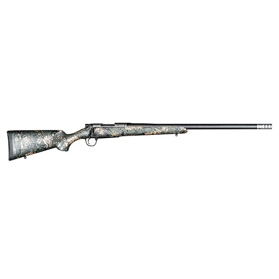 Utilizing the latest in carbon fiber manufacturing the Ridgeline FFT is up to a full pound lighter while introducing additional features such as an FFT carbon fiber floor plate and bolt knob. The new side-baffle brake and stylish paint scheme distinguish the new model even further all while retaining the Christensen Arms Sub-MOA Guarantee. – BARREL – Christensen Arms 416R Stainless Steel – Aerograde Carbon Fiber Wrapped Barrel – Stainless Steel Side-Baffle Brake (Removable) – Match Chamber – Hand Lapped – Button Rifled – Free Floating – ACTION – Natural Stainless or Burnt Bronze Cerakote Finish – STD 6-48 Rem 700 Optics Base Compatible – Left-Handed Options Available – Enlarged Ejection Port – Trigger Tech Trigger – Billet Aluminum Bottom Metal – FFT Hinged Floor Plate – Improved Bolt Release – FFT Bolt Knob – Internal Magazine 4 Round Capacity (3 Magnum) – STOCK – Christensen Arms FFT Carbon Fiber – Sporter Style – Stainless Steel Bedding Pillars – Spot Bedding – Recoil Pad – COLOR – Action Finish: Natural Stainless – Stock Finish: Green Stock with Black and Tan Webbing