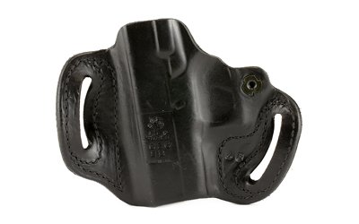 The Mini Slide(R) is a premium saddle leather, double seams and a highly detailed molded fit, make this exposed muzzle, tight fitting, two-slot holster a great choice for your favorite pistol. It features an adjustable-tension device. Available in black or tan unlined leather. Belt slots are 1 3/4″ wide.