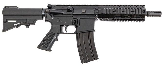 Features – Barrel: 7.5 Chambered in 300AAC Blackout with a 1:8 twist rate M4 barrel extension and a pistol length gas system. This phosphate barrel is finished off with a DPMS Quad Rail free-float rail .750 diameter low profile gas block and an A2 flash hider. -Upper: Forged 7075-T6 A3 AR upper is made to MIL-SPECS and hard coat anodized black for durability. These uppers are made for us right here in the USA by a mil-spec manufacturer. – Bolt: Bolt is made of Mil-spec shot-peened Carpenter 158 steel. Gas key is secured with grade 8 fasteners and staked per mil-spec. Bolt carrier is parkerized outside and chrome lined inside. – Lower: These forged lowers are quality made using 7075-T6 aluminum and are marked MULTI for caliber. Finish is hard coat anodize. Finished with an A2 pistol grip DPMS adjustable CAR brace and 6 position 7075 buffer tube. The fire control group is a mil-spec single-stage assembly. – Details – Barrel Length: 7.5 – Barrel Profile: Heavy – Barrel Steel: Chrome Moly Vanadium – Barrel Finish: Phosphate – Chrome Lining: No – Muzzle Thread Pattern: 5/8 x 24 – Twist Rate: 1 in 8 – Barrel Extension: M4 – Gas System Length: Carbine – Diameter at Gas Block: .750 – Gas Block Type: Low-Profile Gas Block – Muzzle Device: A2 -style – Receiver Material: Forged 7075-T6 – Receiver Type: M4 – Handguard Type: DPMS 6.5 Quad Rail – Bolt Material: Carpenter 158 Steel – Bolt Carrier Profile: Full Auto – Fire Control Group: Mil-Spec FCG – Grip: DPMS A2 Grip Black – Buffer Tube: 7075 T6 Aluminum – Adjustment: 6 Position – Pistol Brace: DPMS Adjustable CAR Brace – Magazine: 1 (One) 30 Round DPMS Aluminim Magazine