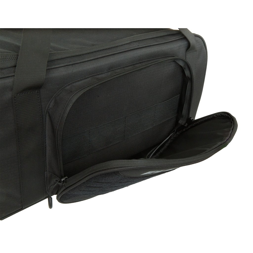 Prepare for every range day with the Elevation Tailwind Range Bag — your go-to solution for organized and efficient gear storage. Built for shooters who demand versatility and durability, this bag is made with a ripstop water-resistant shell and lined internally with Velcro. Featuring a fold-out gun mat with a cleanable PVC interior, the range bag is easy to clean after a long day of shooting. Laser cut MOLLE lines two sides externally making an adjustable setup. The range bag includes 1 external sleeve pocket and 2 external accessory pockets containing elastic loops. Internally, the range bag features 2 dividers with sleeve pockets and a detachable magazine holder with 4 magazine sleeves. Included is 1 Elevation Pistol Sleeve for transporting your most-prized possession/work horse to the range.
