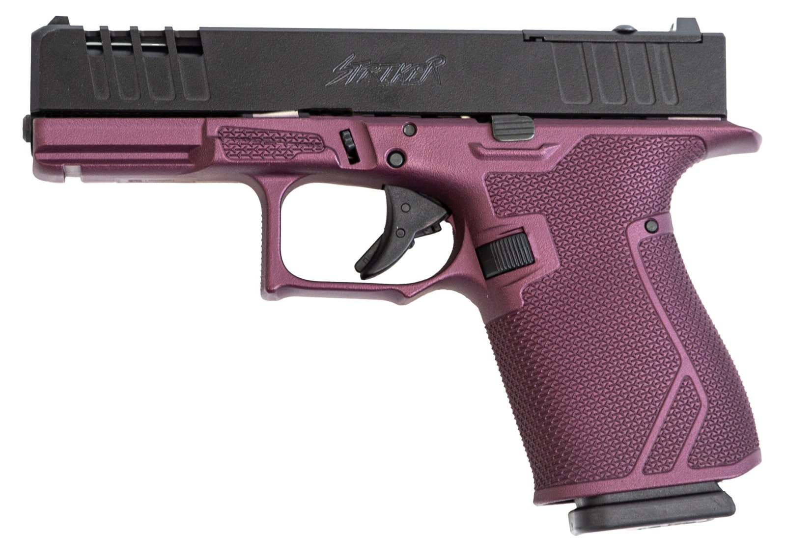 GLFA 19 STRIKER 9mm Compact Polymer Framed Striker-Fired Pistol Optic Ready RMR Compatible Ported Slide W/ Front & Rear Slide Serrations Compatible With Gen3 Parts Ambi-Magazine Release Cerakoted Black Cherry Frame 4 Barrel 1-15rd Glock Compatible Magazine