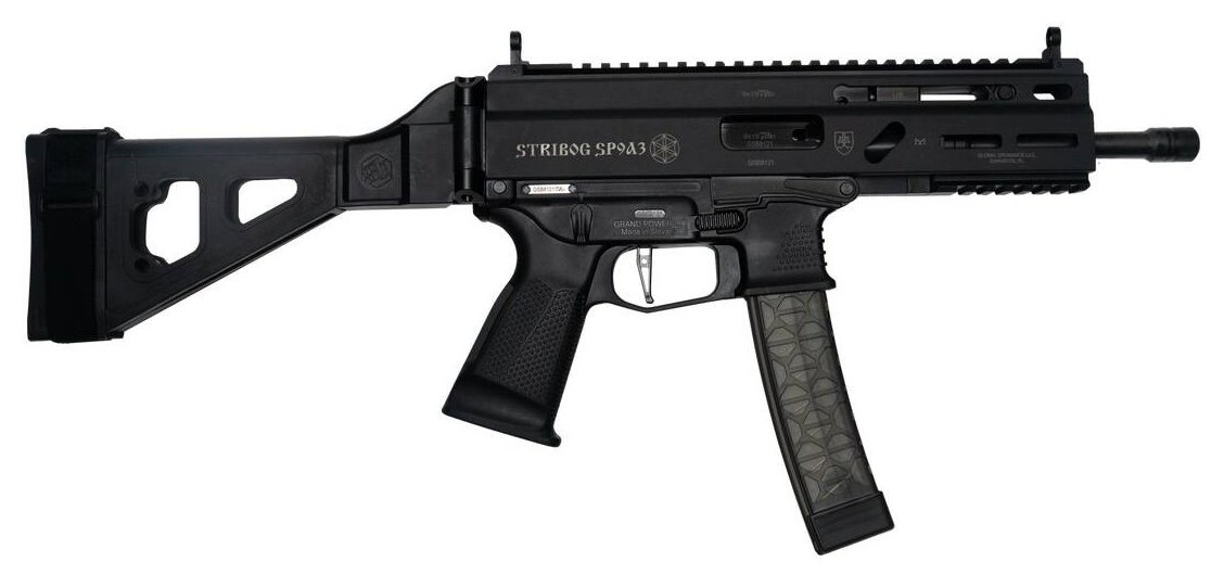 The Grand Power Stribog Grand Power Stribog SP9A3 9mm Sub Pistol SBT Brace is a Slovakian-made firearm imported by Global Ordnance. This model operates via a roller-delayed blowback system delivering consistent performance and reliability. Chambered in 9mm it features a 8 Threaded Barrel (1/2×28) ready for your preferred muzzle device. It ships with 3x 30rd Grand Power proprietary magazines. Built-in sights allow for out-of-the-box readiness. Fully ambidextrous controls and a non-reciprocating charging handle. Includes a molded hard carrying case. Built around a rugged aircraft-grade aluminum upper with a polymer lower and outfitted with a sb tactical sbt folding brace for optimal control and adaptability. – Roller-Delayed Blowback – 9mm 8 Threaded Barrel (1/2×28) – 3x 30rd Grand Power Proprietary Magazines – SB Tactical SBT Folding Brace – Alloy Upper Polymer Lower Black Hardcoat Anodized