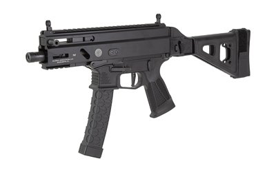 For easy concealment, the shortest SP9 A3S version is available, measuring just 12.44 inches with the stock folded (without a muzzle device). All internal parts have been designed for reliable function even with a short barrel. The SP9 A3S is equipped with a threaded barrel with a protective end cap, utilizing a 1/2X28 thread pitch. An FRN folding stock can be replaced by an end cap to further increase concealability. Despite its small size, Grand Power managed to retain ample accessory rail space at the 12 and 6 o’clock positions, as well as M-LOK slots at the 3 and 9 o’clock. This allows the user to mount red dots, lights, lasers, grips, and other accessories they may want.