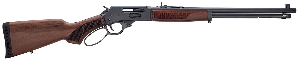Action Type Lever Action – Caliber .360 Buckhammer – Capacity 6 Rounds – Barrel Length 20 – Barrel Type Round Blued Steel – Rate of Twist 1:12 – Overall Length 39 – Weight 7.0 lbs. – Receiver Finish Blued Steel – Rear Sight Fully Adj. Semi-Buckhorn w/ Diamond Insert – Front Sight Brass Bead – Scopeability Drilled and Tapped – Scope Mount Type Weaver 63B – Stock Material American Walnut – Stock/Grip Style Checkered Pistol Grip – Buttplate/Pad Ventilated Rubber Recoil Pad – Length of Pull 14 – Safety Transfer Bar – Best Uses Hunting/Large Game – Embellishments/Extras Sling Swivel Studs