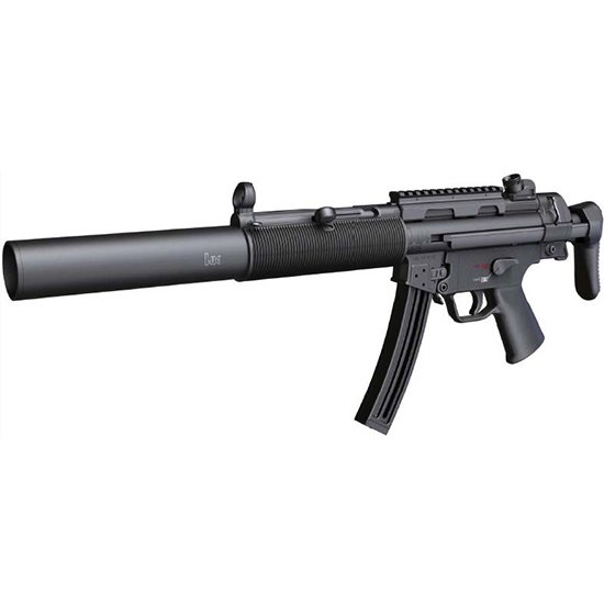 The MP5 submachine gun is easily the most famous of all HK gun designs. In fact the sleek lines of the MP5 may be the most recognizable gun silhouette of all regardless of manufacturer. – Now you can get the authentic look feel and features of the legendary HK MP5 in a semi-automatic .22 LR rifle. HK has partnered with Umarex of Germany to bring you the only HK-authorized rimfire versions of the legendary MP5. So whether you’re looking for an economic but serious sub-caliber trainer a suppressor host or just want the coolest .22 LR fun gun on the range look no further. – Caliber: .22 L.R. HV – Action type: Blowback – Trigger: Single stage trigger – Magazine capacity: 10 / 25 round – Length (overall): 26.4-32.3 in / 670-820 mm – Barrel length: 16.1 in / 409 mm – Width: 2.3 in / 60 mm – Height: 11 in / 280 mm – Weight (empty magazine): 7 pounds / 3170 grams