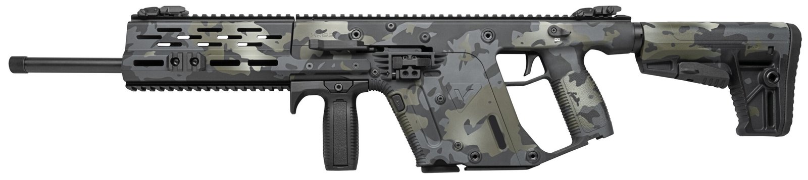 The KRISS Vector 22 CRB is a dedicated semi-automatic rimfire sporting rifle that incorporates the iconic aesthetics and ergonomics of the KRISS Vector carbine design with the modern modularity of a free floating M-LOK hand guard. – The Vector 22 is a one of a kind firearm engineered to fire the .22LR cartridge and designed for rimfire competition training and small game hunting. The Vector 22 offers precision performance and value in an iconic design. – FEATURES: – Threaded barrel – Aluminum M-LOK handguard – Last round bolt lock – Ambidextrous safety – 6 position adjustable stock – Low profile flip sights – Model: Vector CRB – Caliber: .22LR – Capacity: 10 – Barrel Length: 16.0 – Overall Length Collapsed: 34.5 in / 867.3 mm – Overall Length Extended: 37.7 in / 958.8 mm – Operating System: Direct Blowback – Action Type: Semi-Automatic – Stock: 6 Position Adjustable Stock – Color: Camo Black – Weight: 7.4 lb / 3.3 kg – Barrel Material: 4140 Chrome Moly – Barrel Finish: Black Nitride (QPQ) – Twist Rate: 1:16 RH – Thread Pitch: 1/2-28 – Trigger Type: Pivoting Single Stage