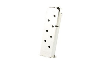 The Match Grade 1911 magazine from CMC is a traditional USGI-style fixed base magazine with improvements in follower design, feed lip geometry, and materials. Match Grade die-controlled tolerances are held to +/- .001, which is more than 75% tighter than magazines made to typical military specifications. Springs are made from aerospace-grade rocket wire and large viewing holes are numbered to quickly determine round count at a glance. The stainless steel Match Grade mag features a welded base plate for the ultimate in durability.
