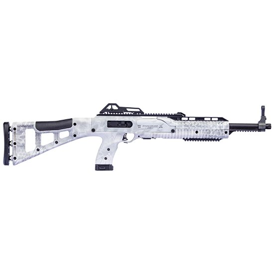Barrel length: 17.5 – Weight: 7 lbs. – Capacity: 10-shot magazine standard – Overall length: 32 – Sights: Fully-adjustable – Stock: All-weather black molded polymer – All Hi-Point Firearms 10mm carbines are +P rated to accept all factory ammunition and feature: – Threaded .578 x 28 barrel standard – Thumb magazine release – All-weather polymer skeletonized stock – Raised soft rubber cheek-piece – FREE trigger lock sling and swivels – 100% American-made parts and assembly – Internal recoil buffer in stock – 10-round magazine – Flat black receiver shroud – Manual thumb safety – Fully adjustable sights (rear peep & post front) – Picatinny rails – Last round lock open