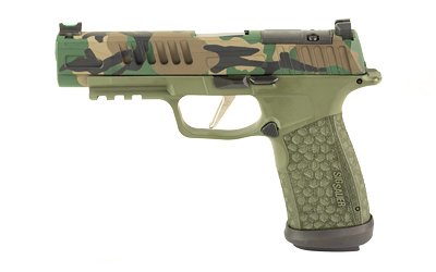 With an innovative new magazine design, the P365-FUSE offers a full-sized 21+1 Round capacity within the sleek, iconic profile of the P365. Its slim, 1-inch-wide profile makes the P365 Fuse more concealable and comfortable to carry than any other 21-round gun on the market. Customized by SkyDas with a 2 Tone M81 Woodland Camo Cerakote finish.