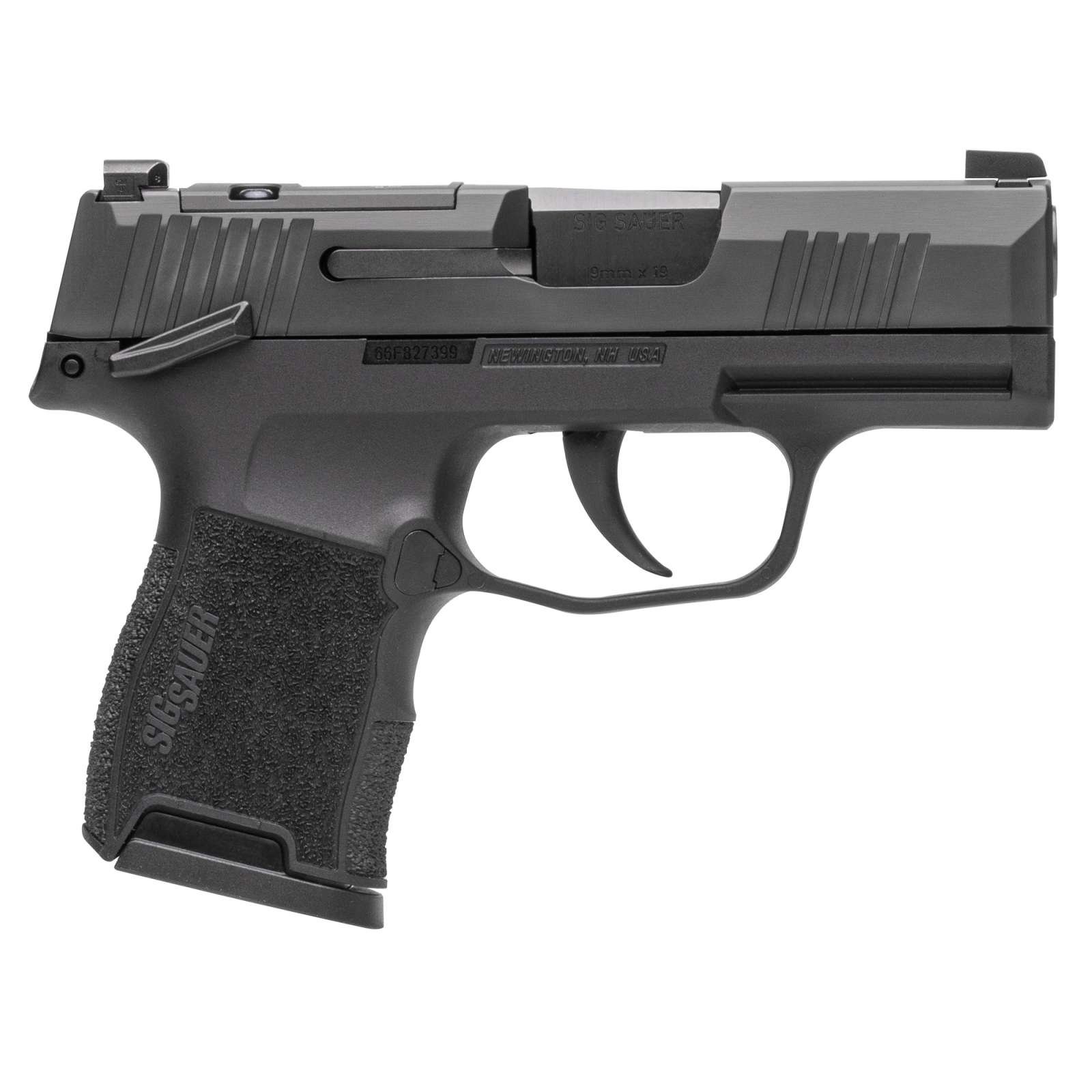Introducing the game-changing P365. Micro-compact everyday carry size with unprecedented 10+1 full-size capacity. The P365 is striker-fired with the clean crisp trigger pull you expect from a SIG. Lightweight and easy to conceal the P365 is chambered in 9mm and is rated for +P ammunition. Included standard are XRAY3 Day/Night sights a 10-round flush fit magazine and a 10-round extended magazine. An optional 12-round or 15-round extended magazine allows you to bring the total capacity to 13 or 16 rounds. The new P365. Bring More. Everyday. – CALIBER: 9mm Luger – ACTION TYPE: Semi-Auto – MAGS INCLUDED: (2) 10rd Steel Mag – SIGHTS: X-RAY3 Day/Night Sights – STATE COMPLIANT: MA – GRIP TYPE: Blk Polymer – FRAME SIZE: Micro-Compact – FRAME MATERIAL: Stainless Steel – FRAME FINISH: Nitron – SLIDE FINISH: Nitron – SLIDE MATERIAL: Stainless Steel – BARREL MATERIAL: Carbon Steel – TRIGGER: Striker – TRIGGER TYPE: Standard – BARREL LENGTH: 3.1 in (78 mm) – OVERALL LENGTH: 5.8 in (147 mm) – OVERALL WIDTH: 1.0 in (26 mm) – HEIGHT: 4.3 in (109 mm) – WEIGHT: 17.8 oz (500 g)
