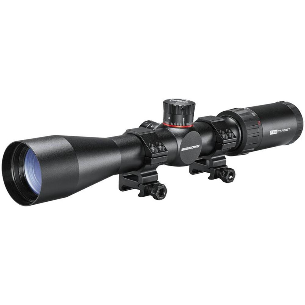 The Simmons Pro Target Riflescopes offer an all-glass optical system provides crisp images in low lighting conditions with fully coated lenses and IPX7 waterproof fog-proof and shockproof construction giving you piece of mind in the outdoors. Built with an aggressive and rugged new design including textured magnification power change ring and exposed adjustable windage and elevation target turrets. The Pro Target riflescopes feature a 30mm one-piece aluminum main tube with a Simmons Mil Dot Reticle. All Simmons riflescopes come ready to go out of the box with included lens covers and one-inch aluminum Weaver-style rings.