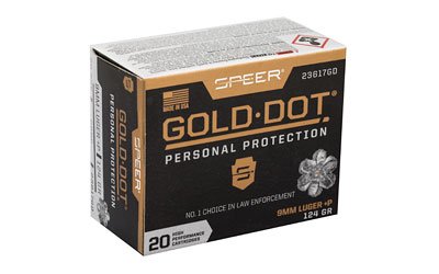 Gold Dot was the first handgun ammunition loaded with true, bonded-core bullets. Using an exclusive Uni-Cor(R) method, Speer bonds the jacket to the core one molecule at a time at the very beginning of the bullet construction process. This virtually eliminates core-jacket separation. With options for both standard handguns and short barrels, there’s a Gold Dot load to fit any shooter. Each Gold Dot hollow point cavity is tuned by specific caliber and bullet weight to ensure optimum performance. Speer forms the hollow point cavity in two stages. The first establishes how far the bullet can expand; the second controls the rate of expansion. This patented two-step cavity formation gives Speer engineers incredible control in the design process. Each bullet caliber and weight is tuned for optimum expansion and penetration. The bullet is then finished to provide a smooth profile for reliable feeding in semi-automatic handguns. To ensure Gold Dot performs when you need it most, they first make sure it excels in the stringent tests developed by the Federal Bureau of Investigation for service-class handgun cartridges. These protocol tests evaluate penetration, expansion and retained weight in bare gelatin and gelatin shielded by common barriers.