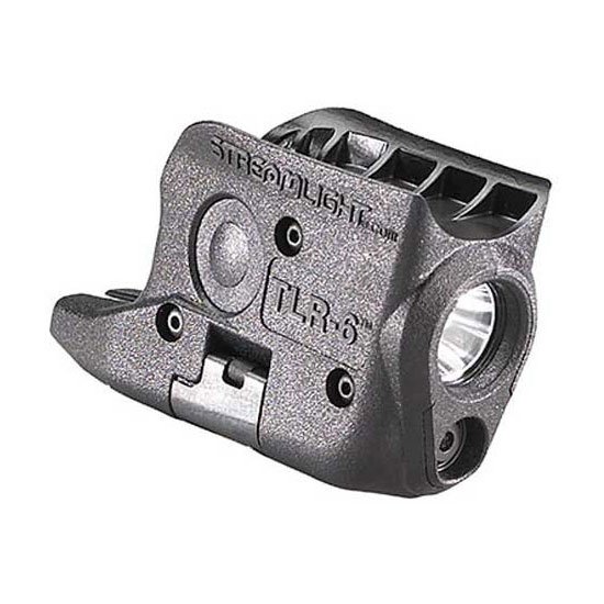 Using this light/laser combination on subcompact handguns allows for easier identification of potential threats before taking action. – The TLR-6 Universal Kit includes one Light/Laser module and 6 housings for use with 18+ subcompact handgun models – Individual TLR-6 models also available for more information see DOCS/INFO tab below – Features C4® LED illuminator and a 640-660nm red laser – 100 lumens; 2000 candela; 89m beam distance – Runs 1 hour (LED only or LED/laser combo); 11 hours (laser only) – Parabolic reflector produces a balance of beam and peripheral illumination; optimized electronics provide regulated intensity; red laser provides long-range targeting – Light/Laser Module designed for forward and backward compatibility – Ambidextrous switching (push-button on both sides) to access three modes: Laser only Laser/LED combo LED illumination only – All modes feature a 10 minute auto shut-off to conserve batteries – Batteries can be replaced while light remains mounted on gun; no need to re-sight laser after battery change – Uses two CR1/3N lithium batteries (included) – Removable cover for easy attachment/removal – Windage and elevation adjustment screws mounted in brass bushing for dependable zero retention of laser – Contoured housing securely attaches to trigger guard – Durable impact-resistant polymer construction; IPX4 water-resistant; 1m impact resistance tested – Operating temperatures of -20°F to +120°F – Serialized for positive identification – 2.30 (5.84 cm)-2.97 (7.54 cm) depending on model – 1.12 oz. (32 grams) – 1.27 oz. (36 grams) with batteries; depending on model – Limited lifetime warranty – Assembled in USA