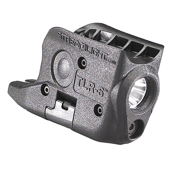 Using this light/laser combination on subcompact handguns allows for easier identification of potential threats before taking action. – The TLR-6 Universal Kit includes one Light/Laser module and 6 housings for use with 18+ subcompact handgun models – Individual TLR-6 models also available for more information see DOCS/INFO tab below – Features C4® LED illuminator and a 640-660nm red laser – 100 lumens; 2000 candela; 89m beam distance – Runs 1 hour (LED only or LED/laser combo); 11 hours (laser only) – Parabolic reflector produces a balance of beam and peripheral illumination; optimized electronics provide regulated intensity; red laser provides long-range targeting – Light/Laser Module designed for forward and backward compatibility – Ambidextrous switching (push-button on both sides) to access three modes: Laser only Laser/LED combo LED illumination only – All modes feature a 10 minute auto shut-off to conserve batteries – Batteries can be replaced while light remains mounted on gun; no need to re-sight laser after battery change – Uses two CR1/3N lithium batteries (included) – Removable cover for easy attachment/removal – Windage and elevation adjustment screws mounted in brass bushing for dependable zero retention of laser – Contoured housing securely attaches to trigger guard – Durable impact-resistant polymer construction; IPX4 water-resistant; 1m impact resistance tested – Operating temperatures of -20°F to +120°F – Serialized for positive identification – 2.30 (5.84 cm)-2.97 (7.54 cm) depending on model – 1.12 oz. (32 grams) – 1.27 oz. (36 grams) with batteries; depending on model – Limited lifetime warranty – Assembled in USA