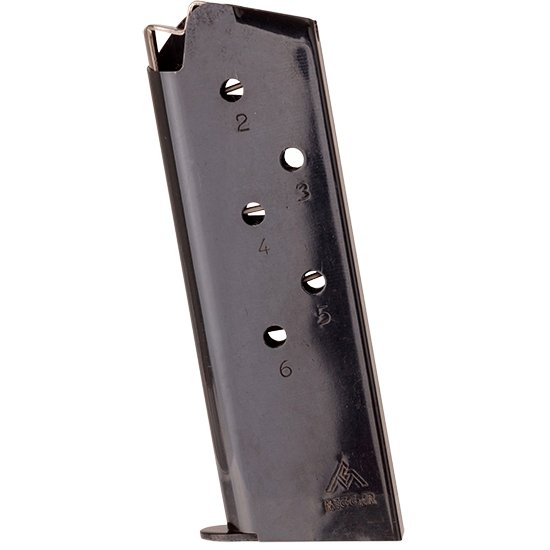 This magazine is compatible with your Taurus 1911 Officer and is constructed of metal. This model has a 6-round capacity and black finish.
