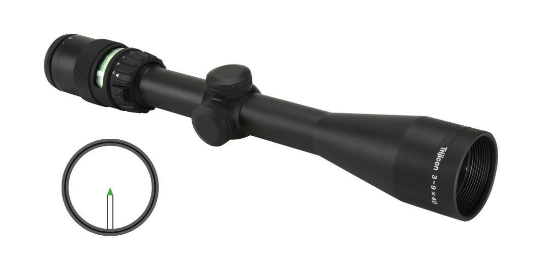 Trijicon AccuPoint features a post reticle with an illuminated green triangle tip. This unique design allows for super-quick target acquisition in any light conditions. The scope is illuminated through the use of fiber optics and tritium providing a vivid aiming point without the need for batteries.