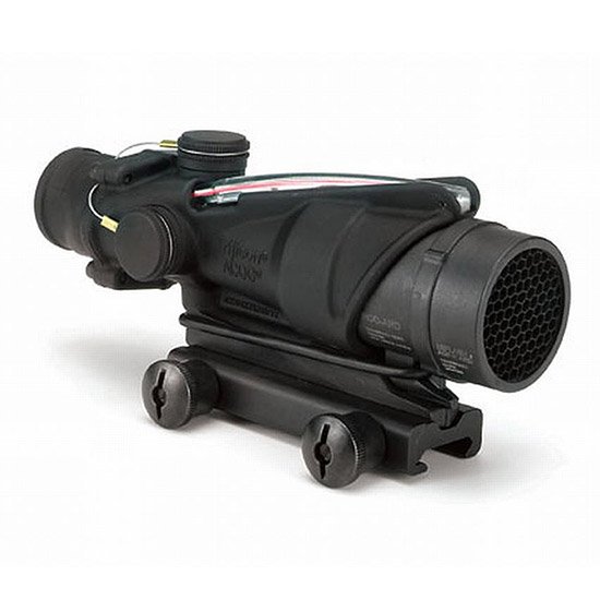 The TA31RCO is an Advanced Combat Optical Gunsight (ACOG) designed for the USMC’s M16A4 weapon system (20” barrel). It incorporates dual illumination technology using a combination of fiber optics and self-luminous tritium. This allows the aiming point to always be illuminated without the use of batteries. The tritium illuminates the aiming point in total darkness and the fiber optic self-adjusts reticle brightness during daylight according to ambient light conditions. This allows the operator to keep both eyes open while engaging targets and maintaining maximum situational awareness. Designed to the exact specifications of the United States Marine Corps the unique reticle pattern provides quick target acquisition at close combat ranges while providing enhanced target identification and hit probability out to 800 meters utilizing the Bullet Drop Compensator. No tools are needed for windage and elevation adjustments because the TA31RCO features external adjusters making it waterproof up to 11m without the caps. Mounting bosses are integrated into the housing by the eyepiece to allow the easy addition of a Trijicon RMR® (not included). The TA31RCO-A4CP includes: 1 Thumb Screw (for mounting to carry handle) (TA53A) 1 killFLASH® Anti-Reflection Device (TA91) 1 Scopecoat (TA96) 1 LENSPEN® (TA56) 1 Lanyard Assembly for Adjuster Caps (TA71E) 1 Trijicon Logo Sticker (PR15) 1 RCO Manual 1 Warranty Card 1 Thumb Screw Flattop Adapter (for mounting to picatinny rail) (TA51) – Magnification: 4x – Objective Size: 32mm – Bullet Drop Compensator: Yes – Length: 6.7 (with ARD) – Weight: 15.8 oz. (with mount and ARD) – Illumination Source: Fiber Optics & Tritium – Reticle Pattern: Chevron w/ Target Reference System – Day Reticle Color: Red – Night Reticle Color: Red – Calibration: 0.223 (20 in. barrel) – Bindon Aiming Concept: Yes – Eye Relief: 1.5 – Exit Pupil: 8mm – Field of View: 7 Degrees – Field of View @ 100 yards: 36.8′ – Adjustment @ 100 yards (clicks/in): 2 – Mount Comes With: Flattop Thumbscrew Mount (TA51) – Housing Material: Forged Aluminum