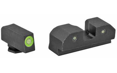 XS R3D Night Sights feature a traditional 3-dot tritium, notch and post sight picture. The blacked-out rear increases contrast against the front sight. The front sight is available in orange or green and is equipped with Ember(R) Glow Dot Technology. Ember absorbs ambient light and glows in low light. The front tritium lamp charges the Ember dot making the front sight glow brighter than the rear at all times, keeping focus downrange. R3D sights are the brightest notch and post option for fast and accurate shooting in bright and low light.