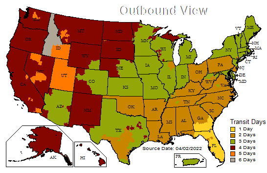 SHIPPING MAP: Estimated Ground Shipping Times